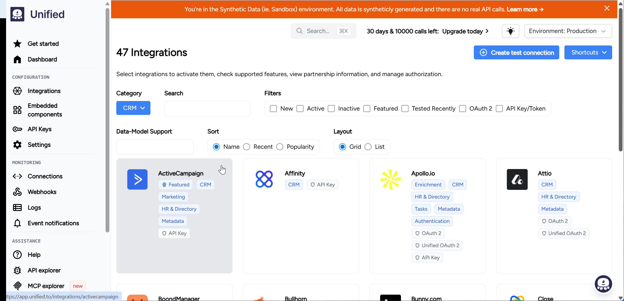 - Pre-built common model for CRM: Merge provides a CRM unified API with normalized objects for contacts, accounts, deals, leads, and more. If your integration needs align with their common model, setup is fast.