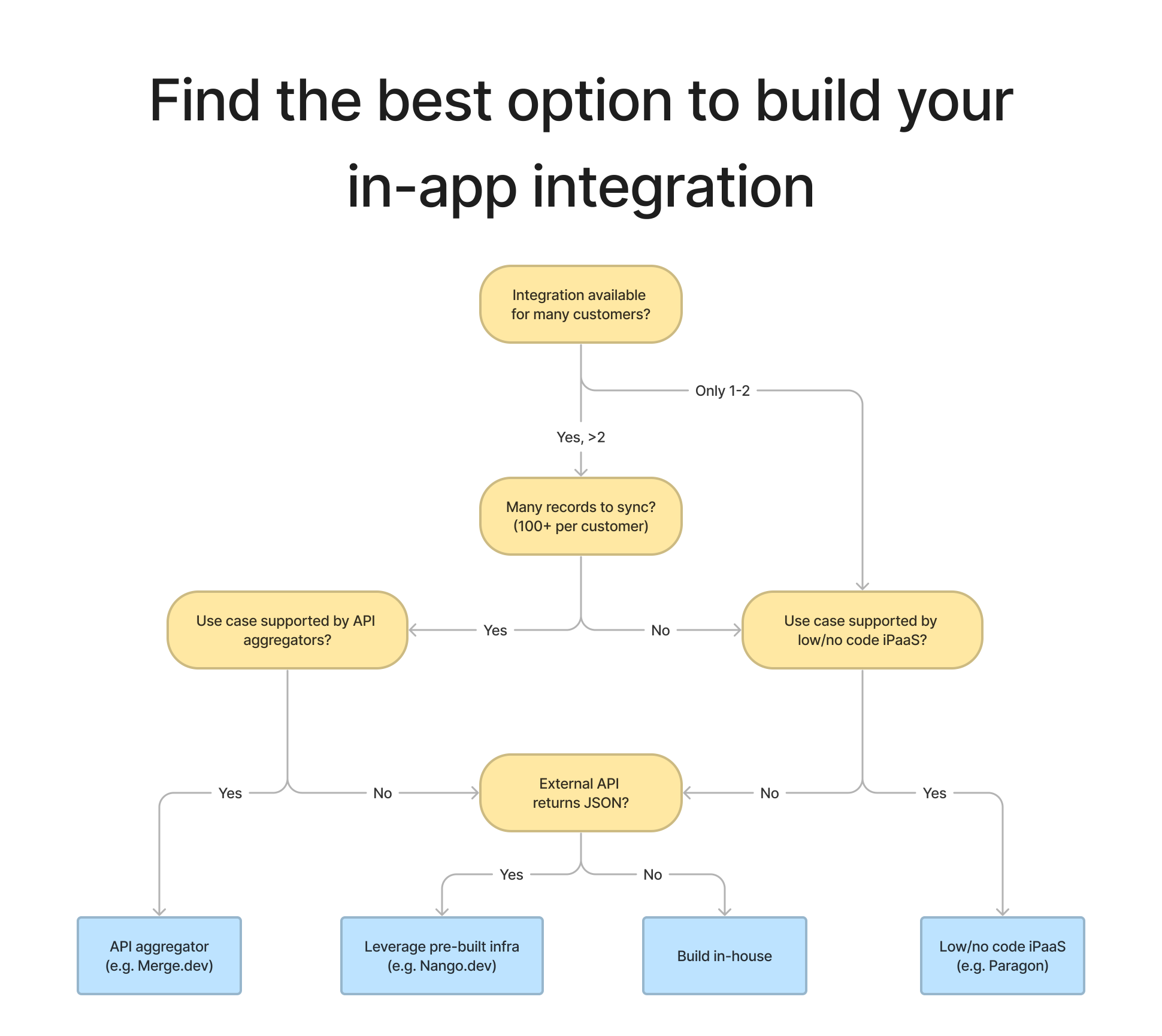 As we spoke to more than 100 engineering teams that build integrations we started to see patterns. We summarise them in this guide and hope it helps you find the best approach for your next in-app integration.