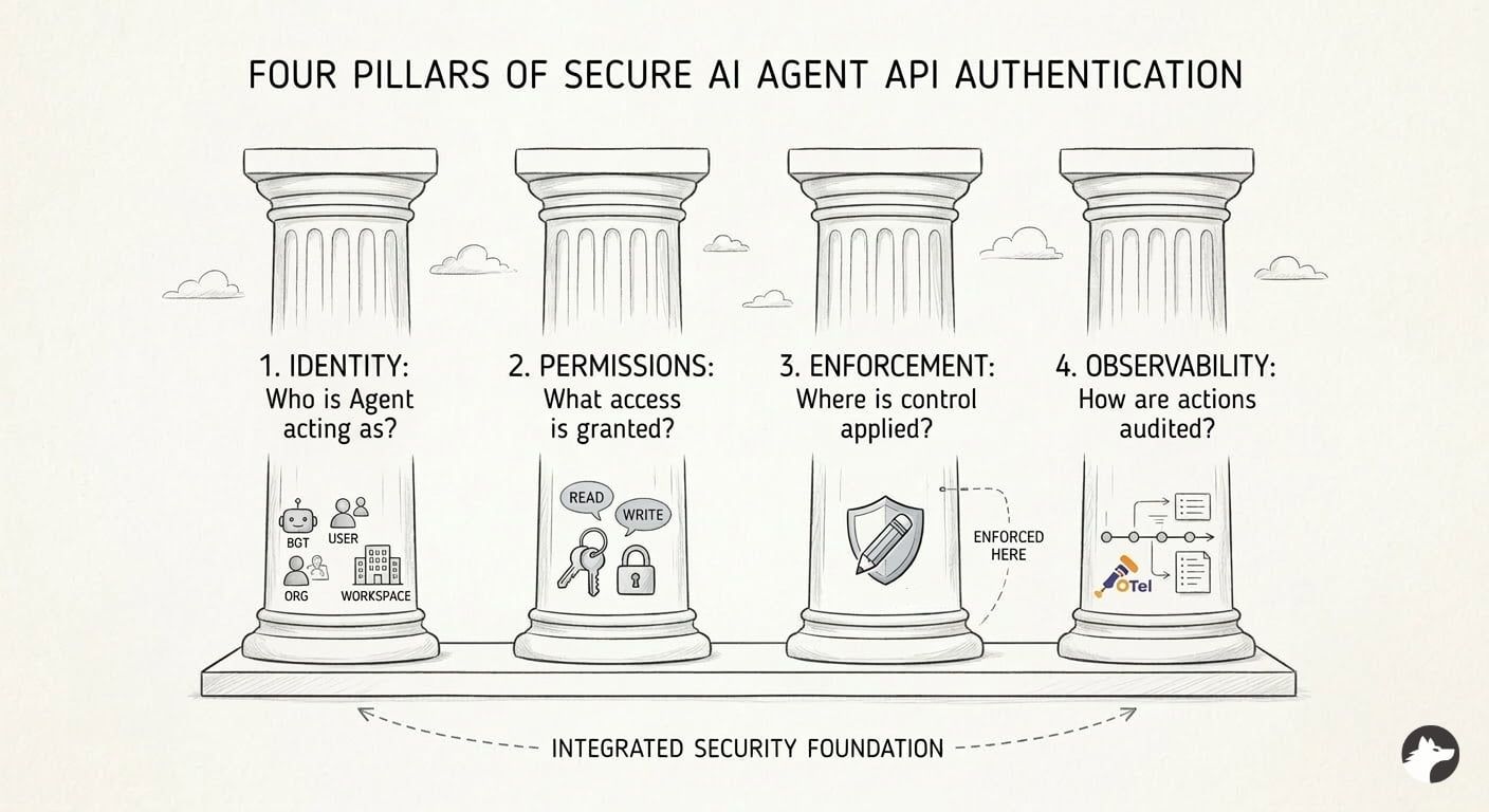 Start by answering these four questions about identity, permissions, enforcement, and observability. These determine whether your agent integration is secure by design or patched after an incident.