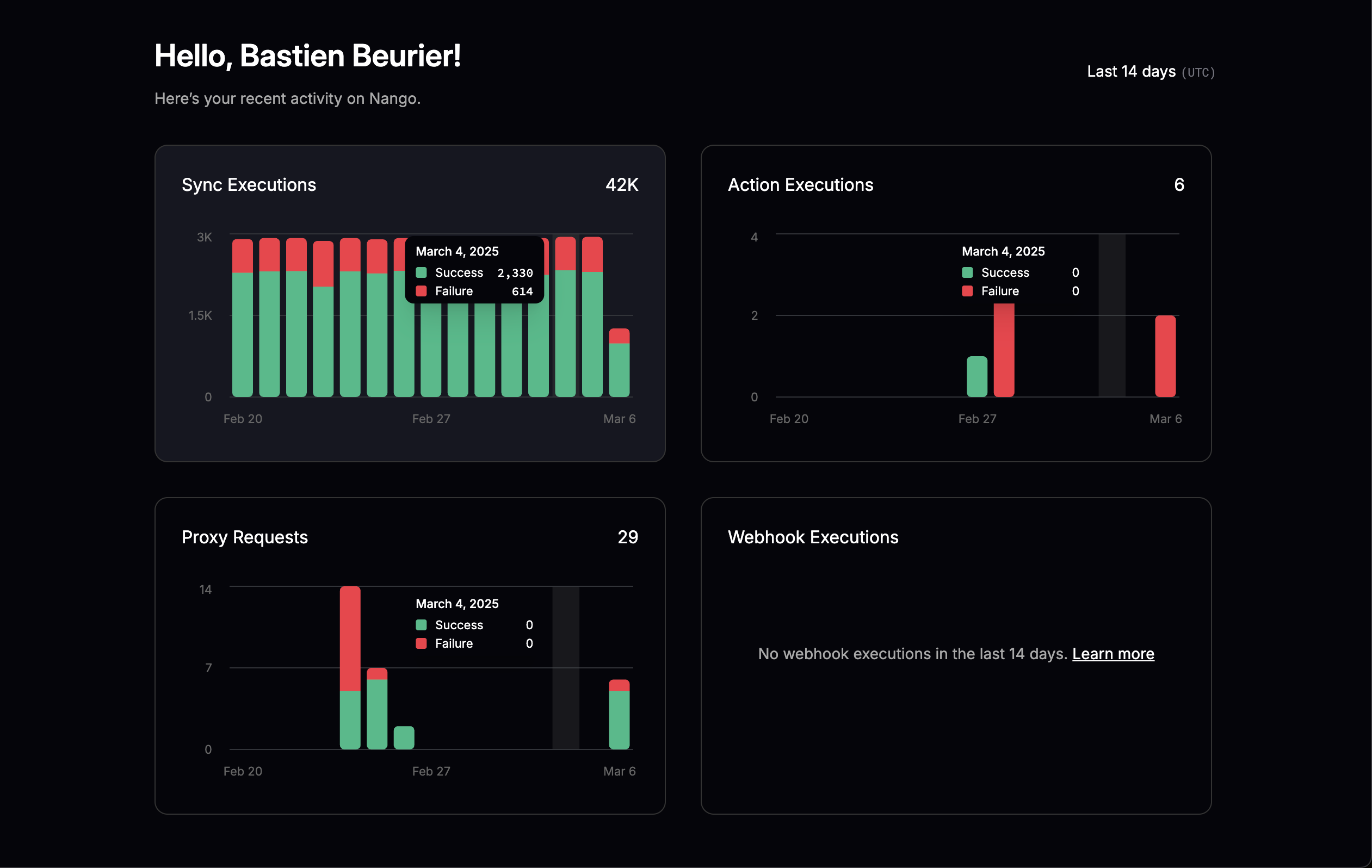Nango now provides real-time metrics directly in the UI. You can track key execution data, including: